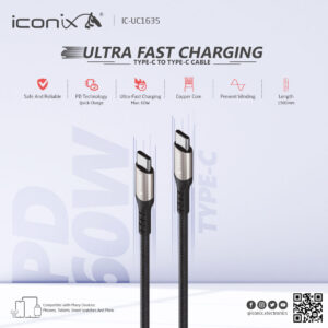 Charging CablesICONIX Type-C To Type-C Ultra Fast Charging And Data Transmission Cable Power 60W, With PD Technology, Model IC-UC1635